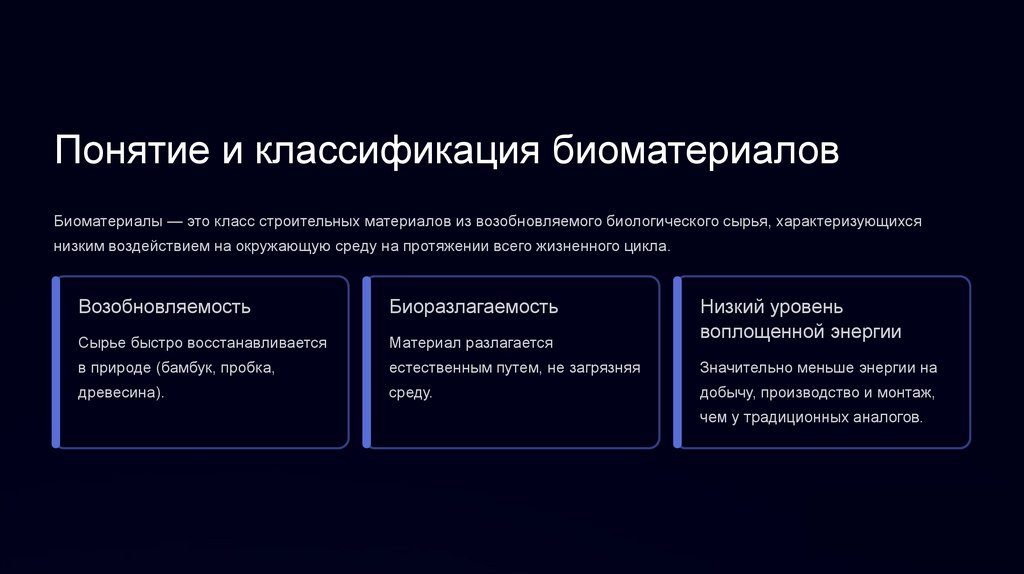 Понятие и классификация биоматериаловБиоматериалы — это класс строительных материалов из возобновляемого биологического сырья, характеризующихся