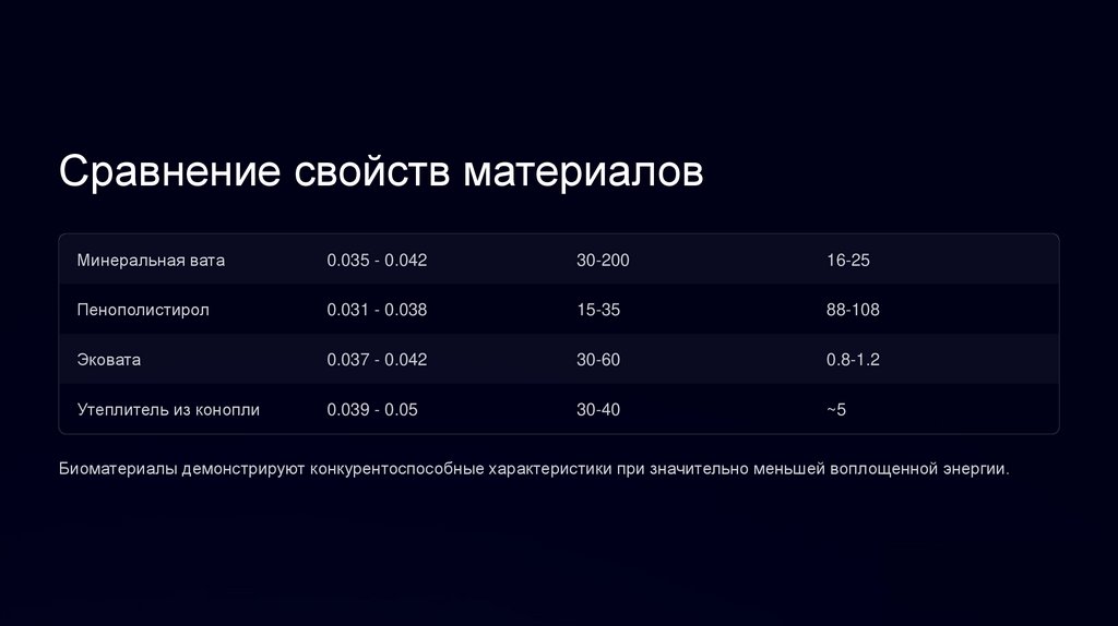 Биоматериалы демонстрируют конкурентоспособные характеристики при значительно меньшей воплощенной энергии.