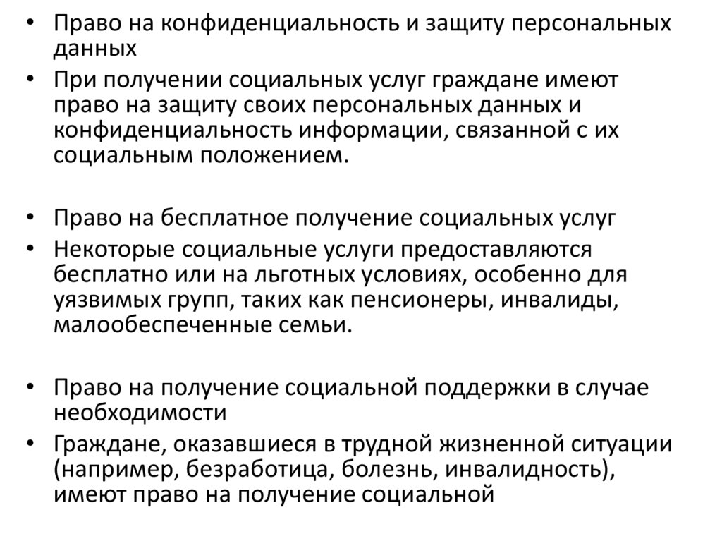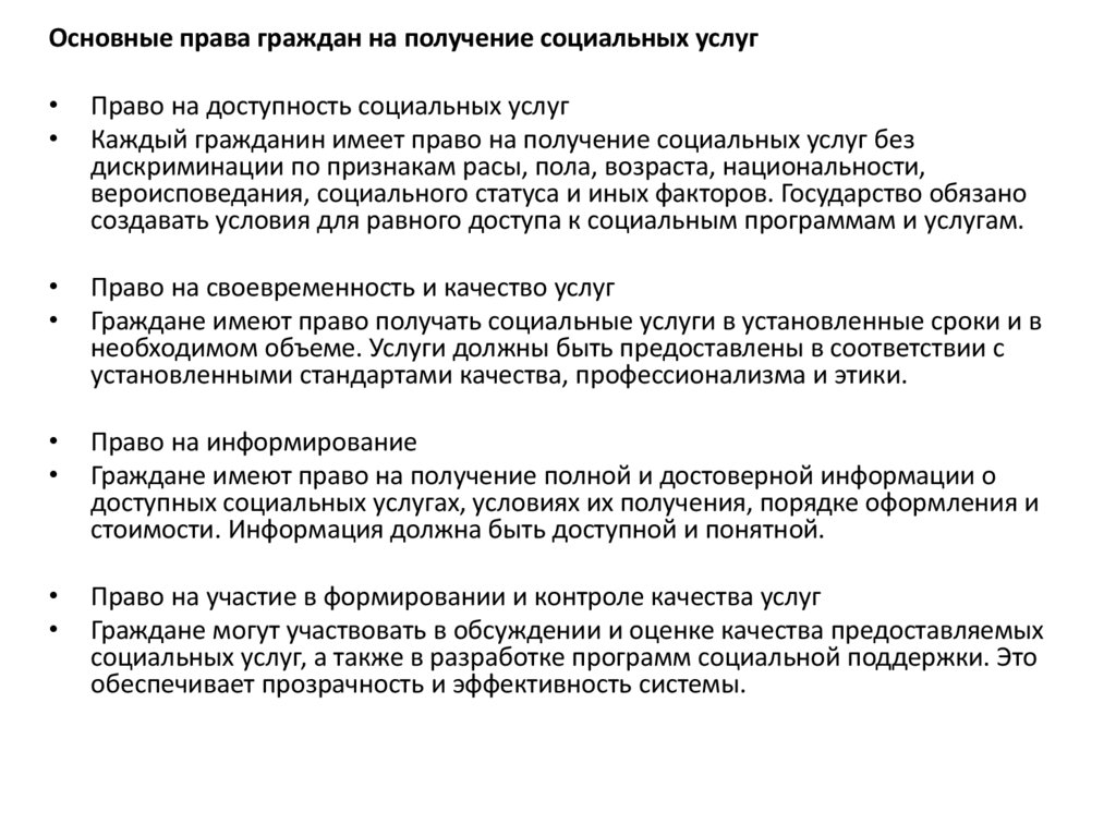 Основные права граждан на получение социальных услугПраво на доступность социальных услуг