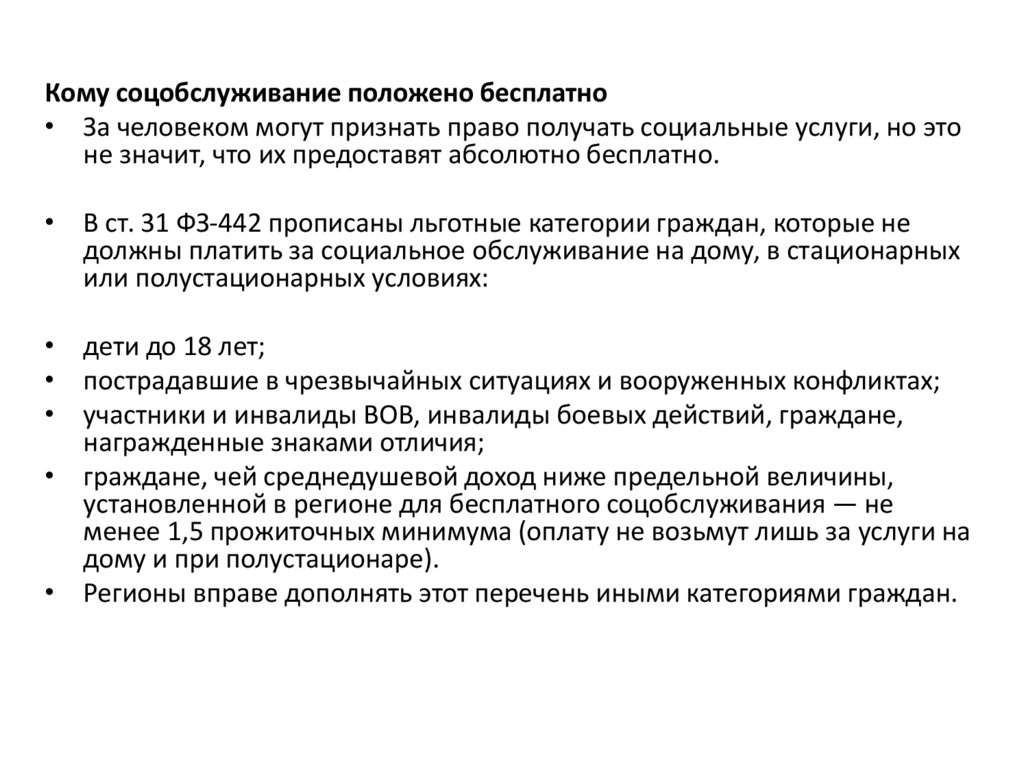 Кому соцобслуживание положено бесплатно• За человеком могут признать право получать социальные услуги, но это