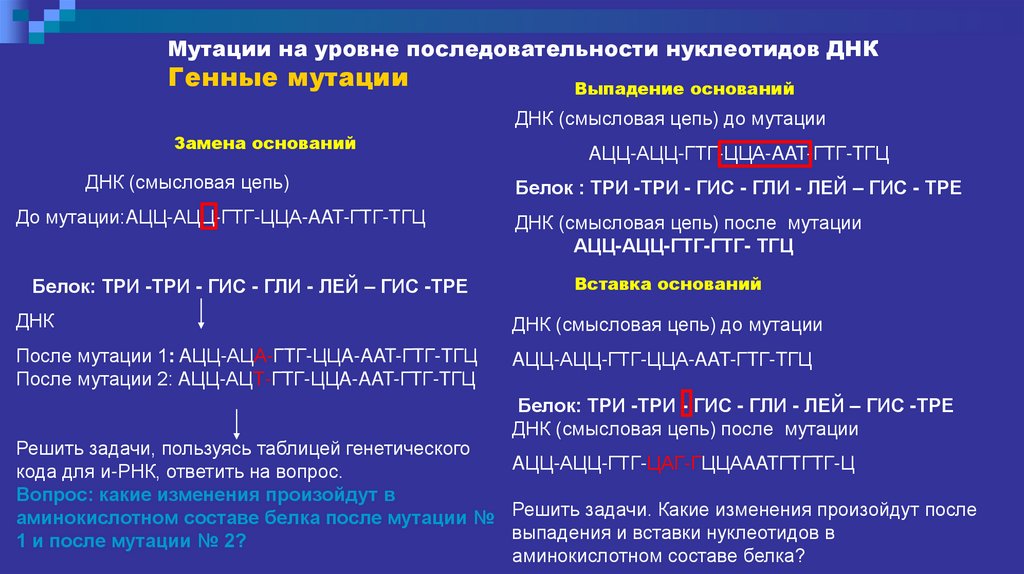 аминокислотном составе белка после мутации № Решить задачи. Какие изменения произойдут после