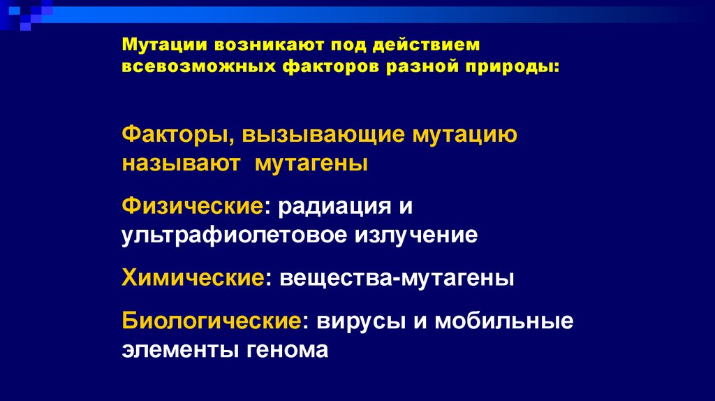 Мутации возникают под действиемвсевозможных факторов разной природы: