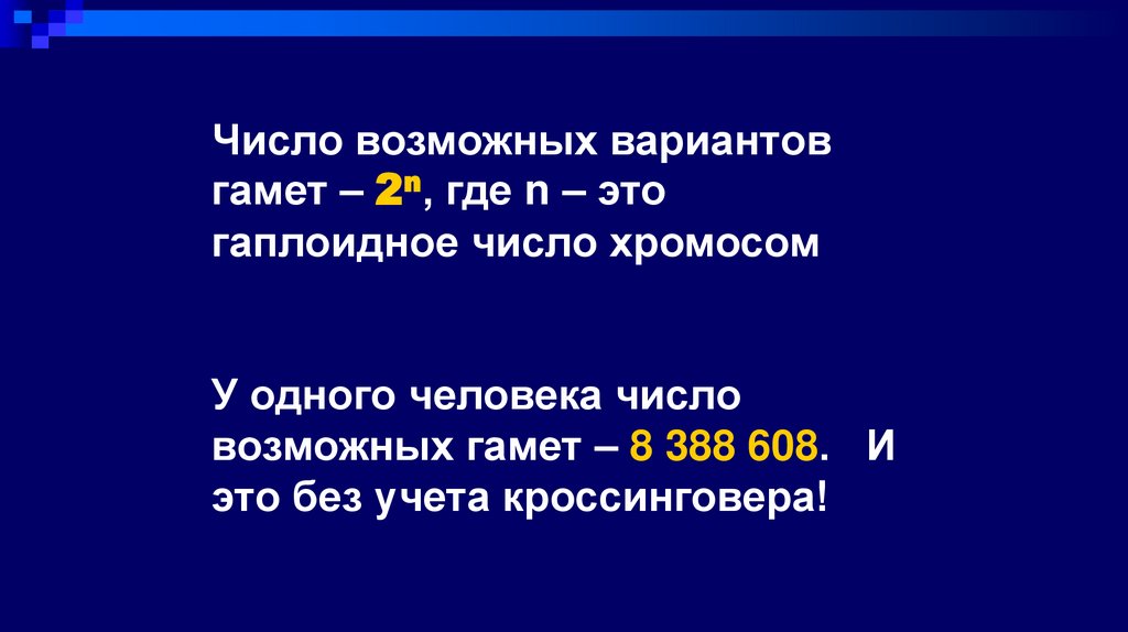 Число возможных вариантовгамет – 2n, где n – это