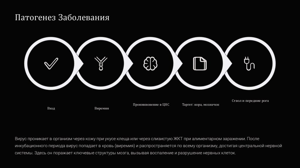 системы. Здесь он поражает ключевые структуры мозга, вызывая воспаление и разрушение нервных клеток.