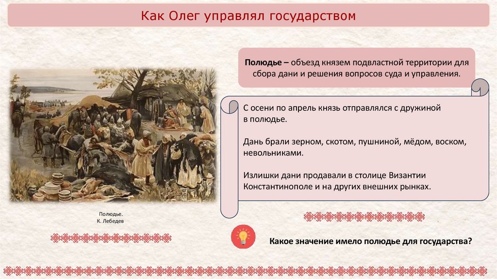 Как Олег управлял государствомПолюдье – объезд князем подвластной территории для