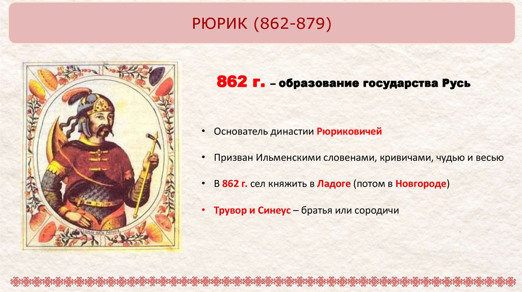 • Призван Ильменскими словенами, кривичами, чудью и весью