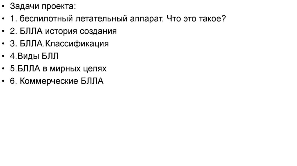 • Задачи проекта:• 1. беспилотный летательный аппарат. Что это такое?