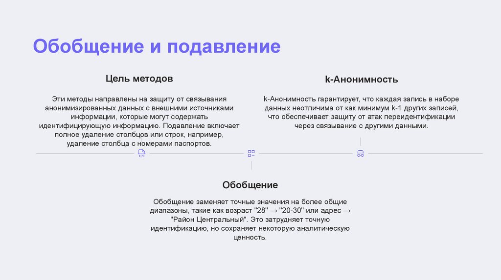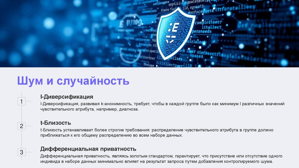 l-Диверсификация, развивая k-анонимность, требует, чтобы в каждой группе было как минимум l различных значений