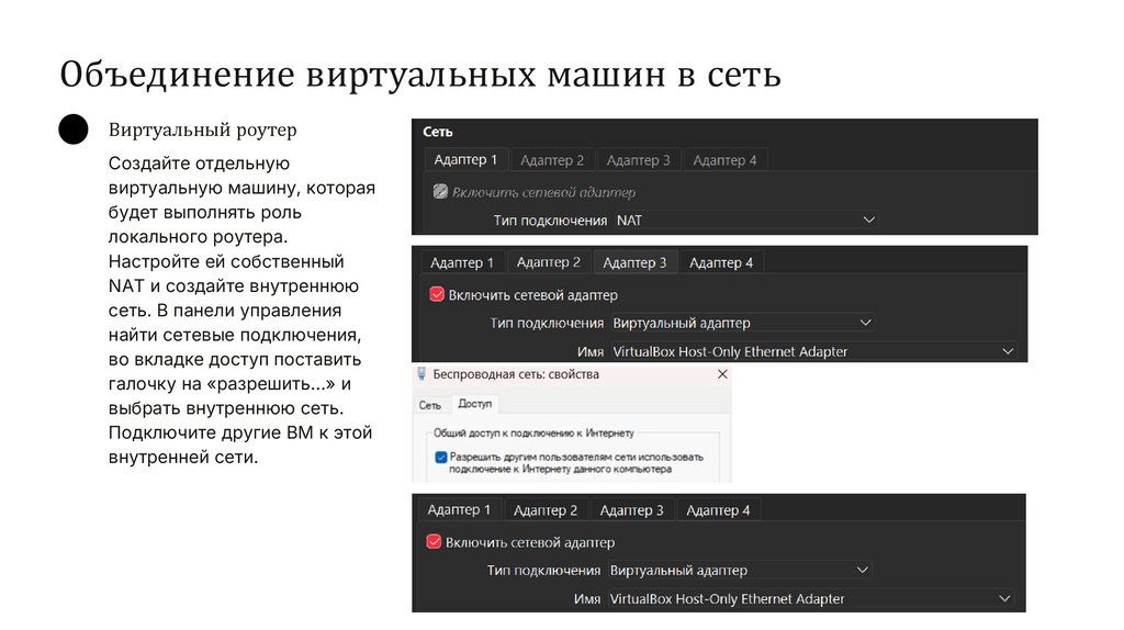 Объединение виртуальных машин в сетьВиртуальный роутер