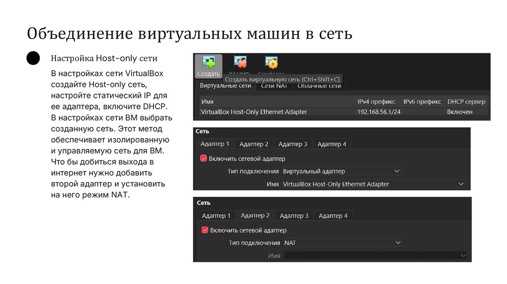 Объединение виртуальных машин в сетьНастройка Host-only сети