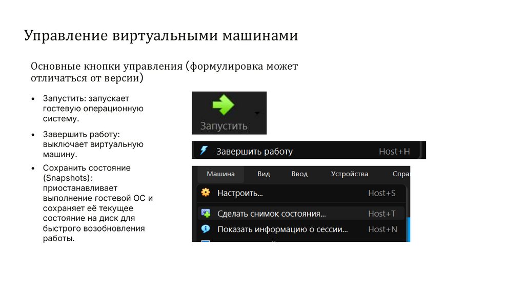 Управление виртуальными машинамиОсновные кнопки управления (формулировка может