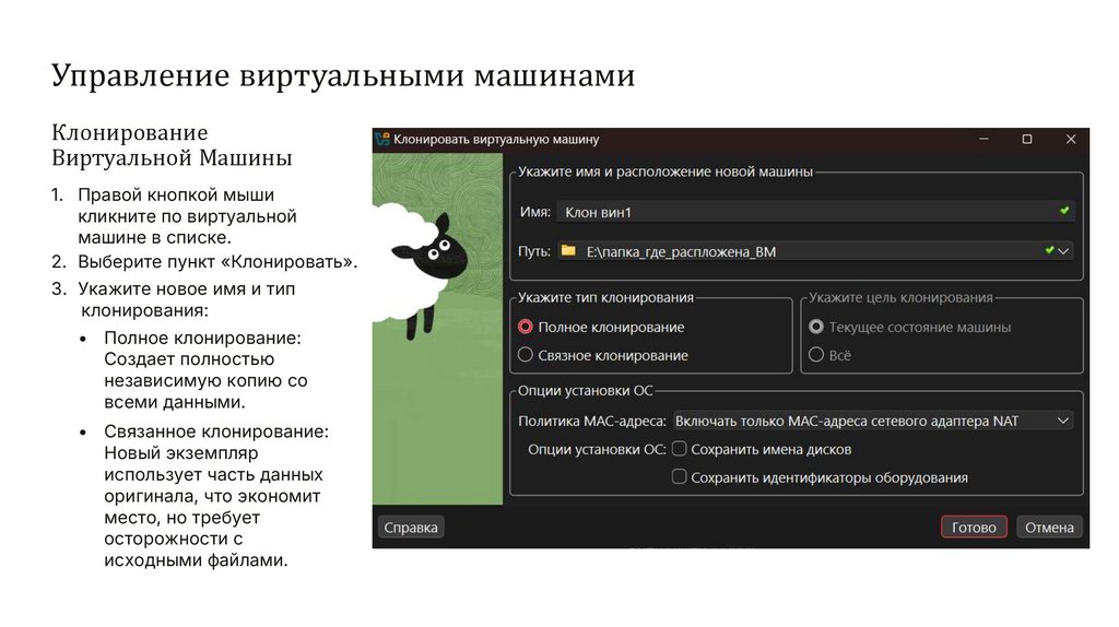 Управление виртуальными машинамиКлонирование