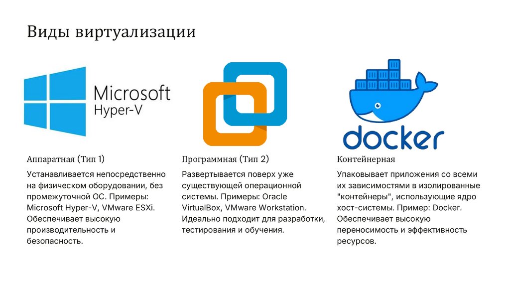 Виды виртуализацииАппаратная (Тип 1)