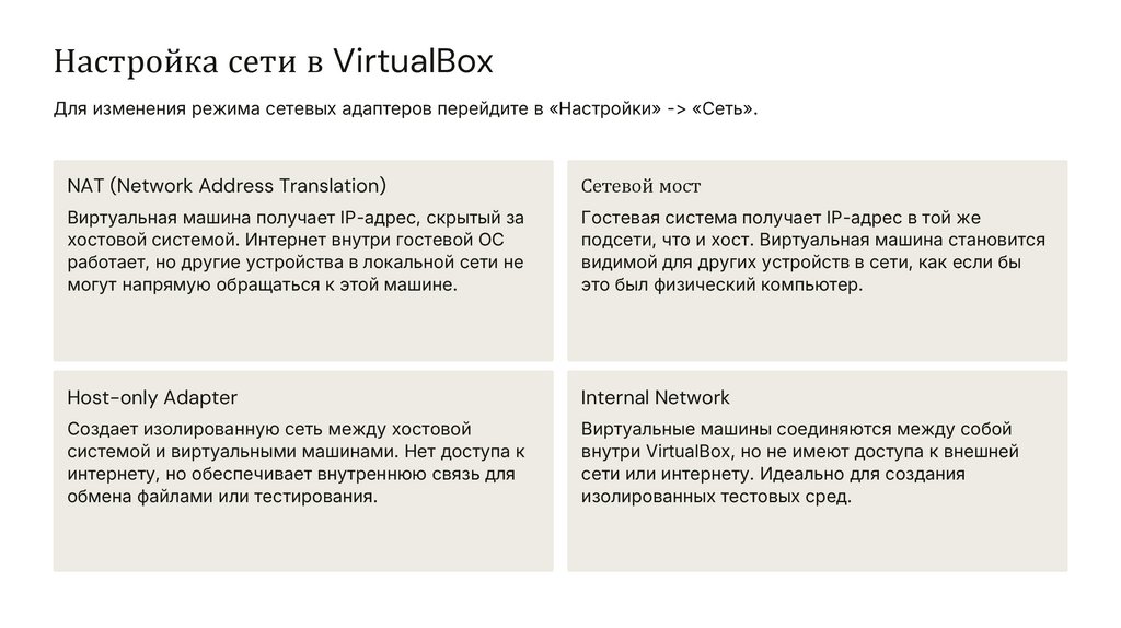и гостевой ОС. Настраиваются в параметрах ВМ.