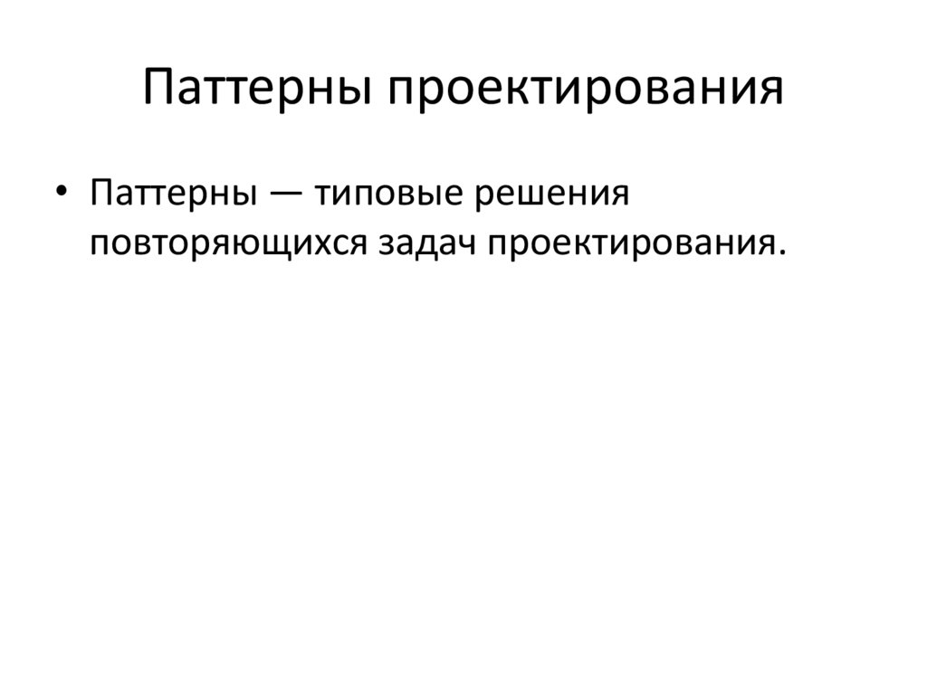 Паттерны проектирования• Паттерны — типовые решения
