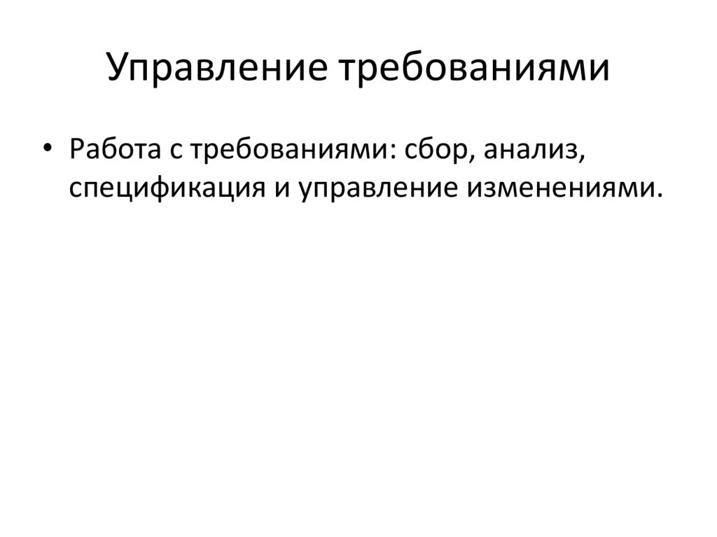Управление требованиями• Работа с требованиями: сбор, анализ,