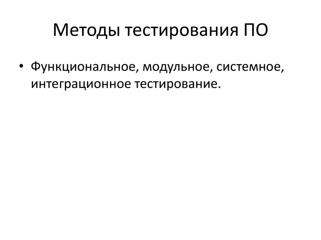 Методы тестирования ПО• Функциональное, модульное, системное,