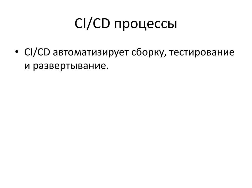 CI/CD процессы• CI/CD автоматизирует сборку, тестирование