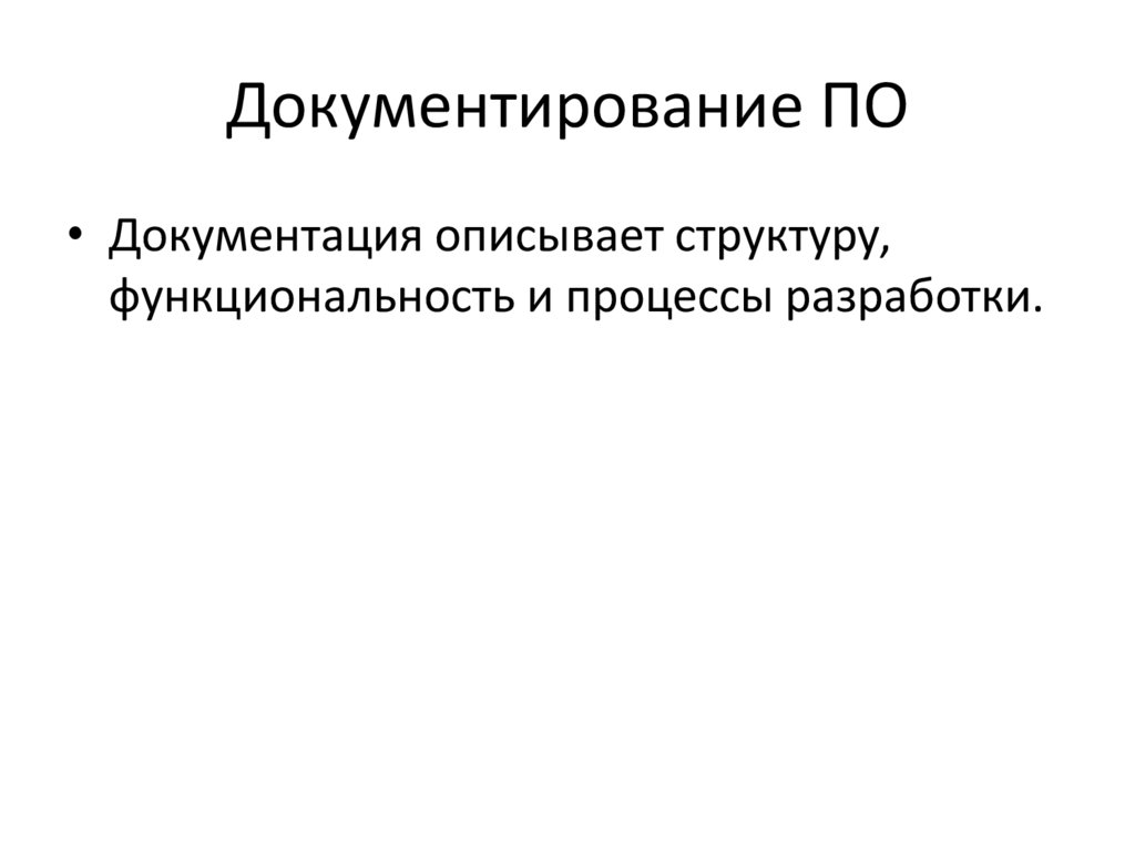 Документирование ПО• Документация описывает структуру,