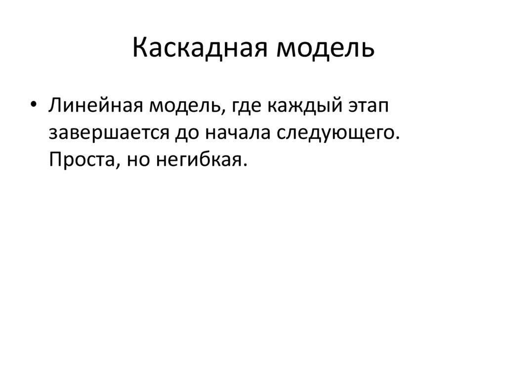 Каскадная модель• Линейная модель, где каждый этап