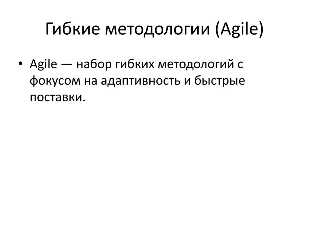 Гибкие методологии (Agile)• Agile — набор гибких методологий с