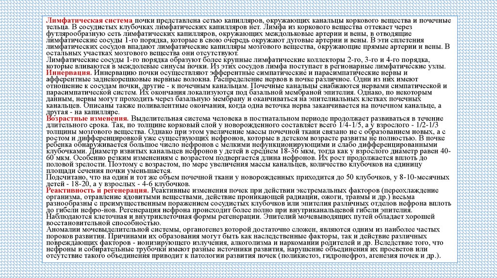 ростом и дифференцировкой уже существующих нефронов, которые в детском возрасте развиты не полностью. В почке