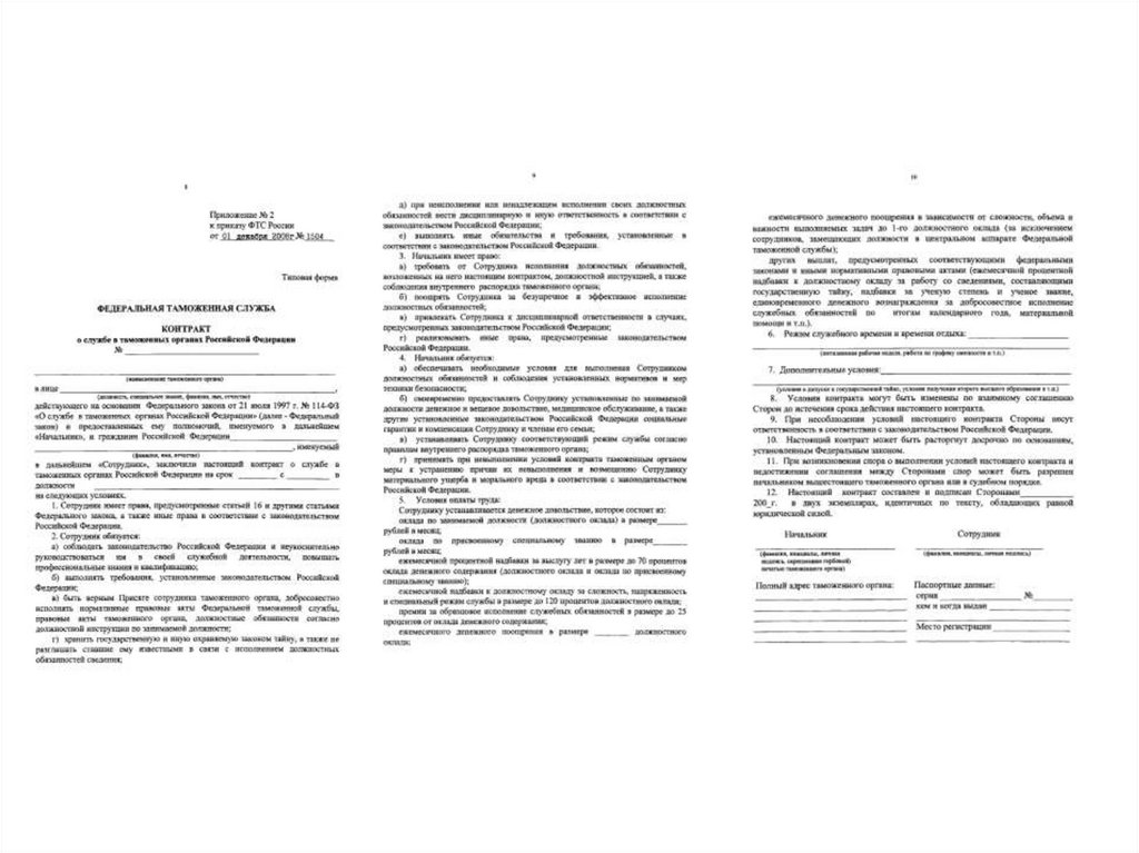 • содержание служебного контракта