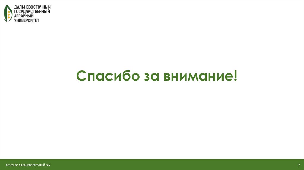 Спасибо за внимание!ФГБОУ ВО ДАЛЬНЕВОСТОЧНЫЙ ГАУ