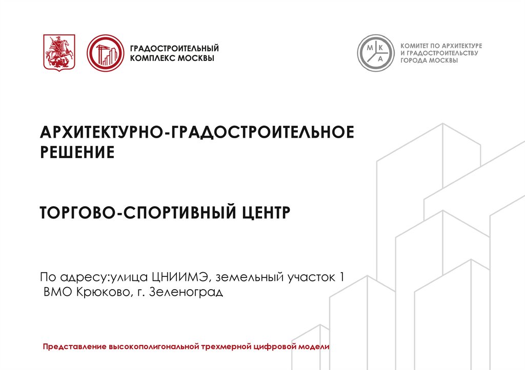 ТОРГОВО-СПОРТИВНЫЙ ЦЕНТРпо адресу: ВМО Крюково, улица ЦНИИМЭ, земельный участок 1