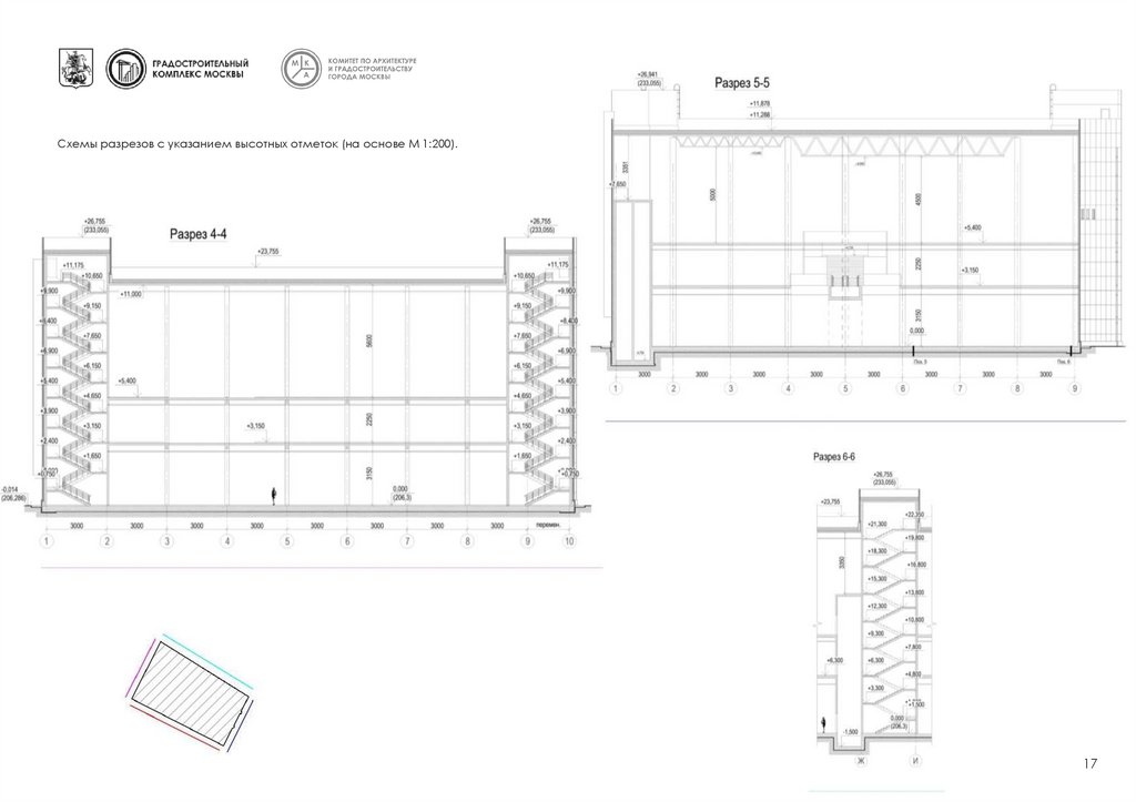Схемы разрезов с указанием высотных отметок (на основе М 1:200).17