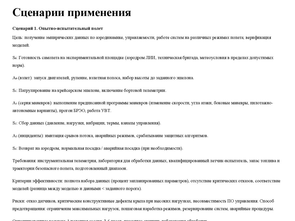 Сценарии примененияСценарий 1. Опытно-испытательный полет