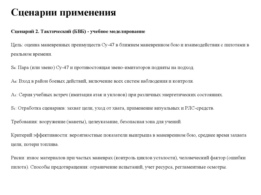 Цель: оценка маневренных преимуществ Су-47 в ближнем маневренном бою и взаимодействия с пилотами в