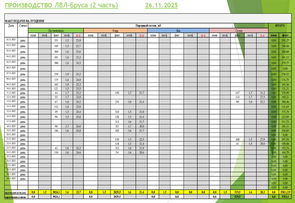 Опер сводка производства по ЮЛХ на 25.11.2025