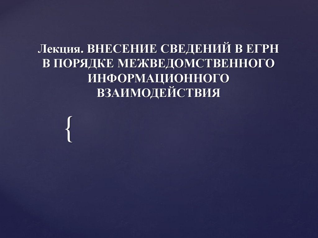 Лекция. ВНЕСЕНИЕ СВЕДЕНИЙ В ЕГРНВ ПОРЯДКЕ МЕЖВЕДОМСТВЕННОГО