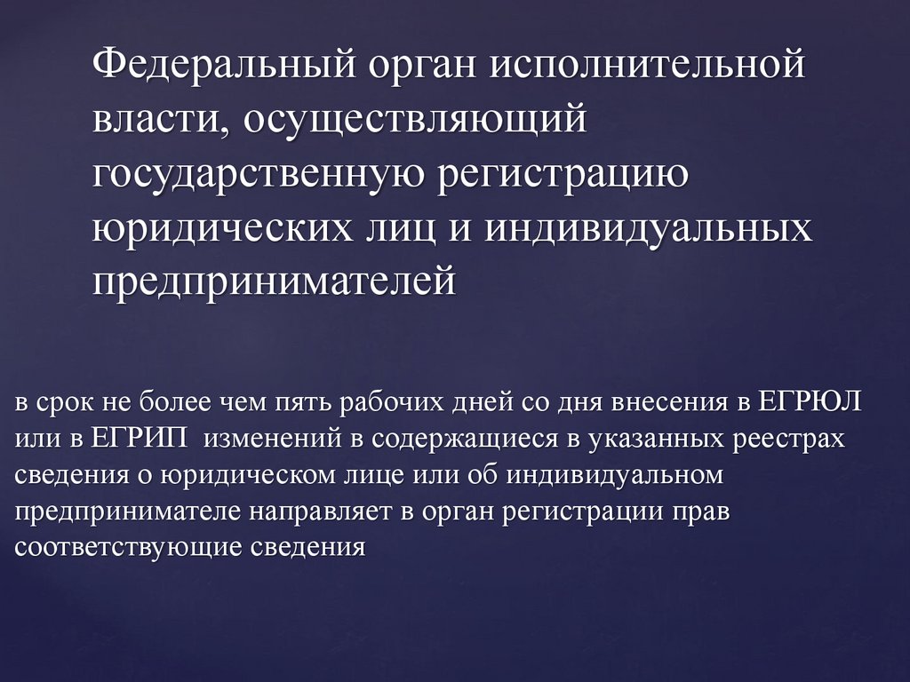 регистрацию юридических лиц и индивидуальных предпринимателей