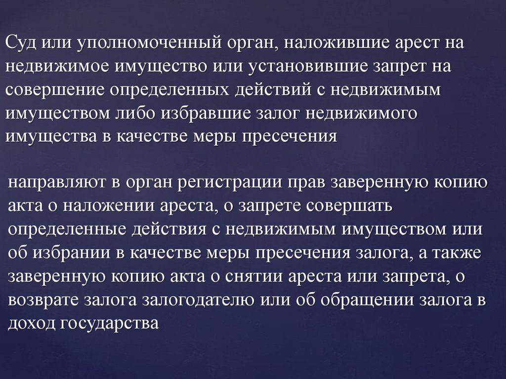 Суд или уполномоченный орган, наложившие арест на недвижимое имущество или