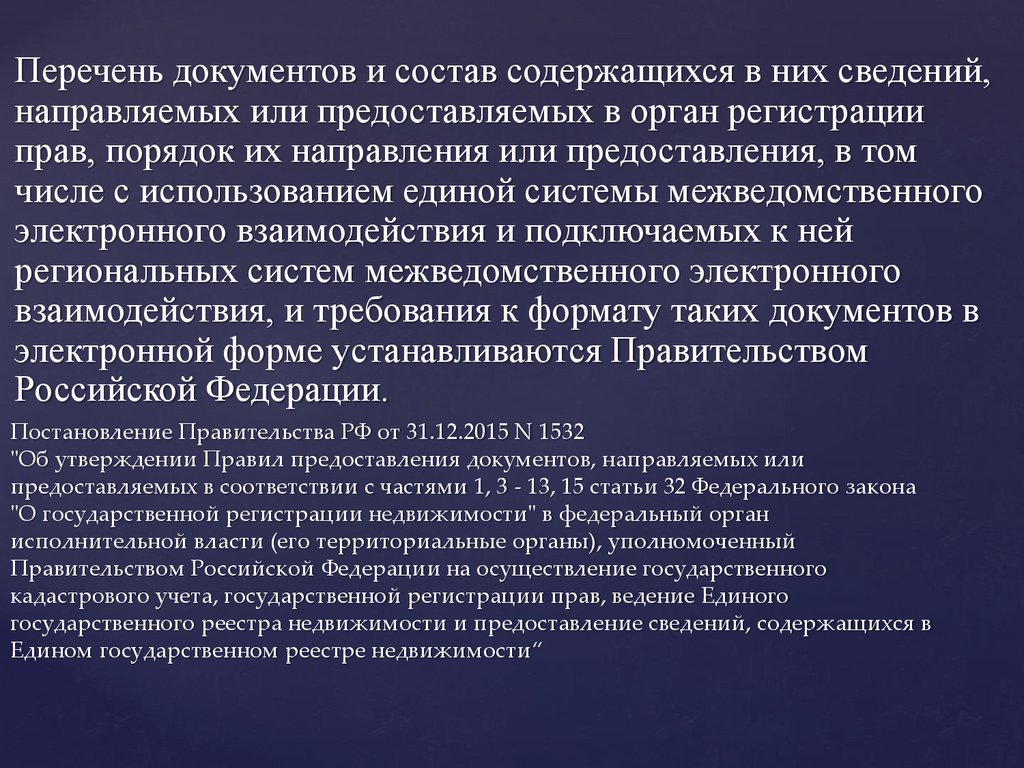Перечень документов и состав содержащихся в них сведений,направляемых или предоставляемых в орган регистрации