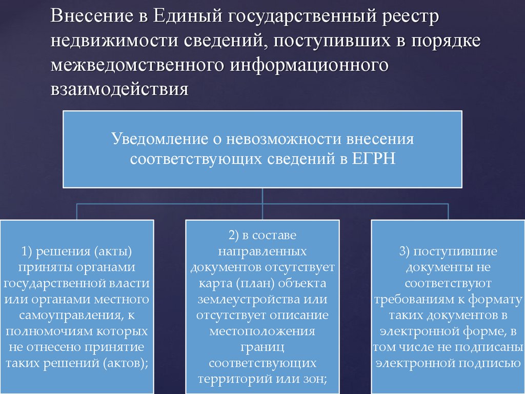 Внесение в Единый государственный реестрнедвижимости сведений, поступивших в порядке