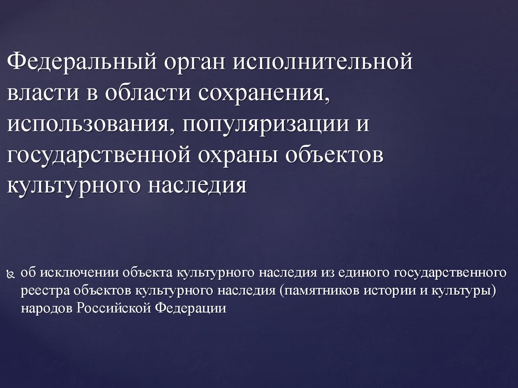 Федеральный орган исполнительной власти в области сохранения, использования,