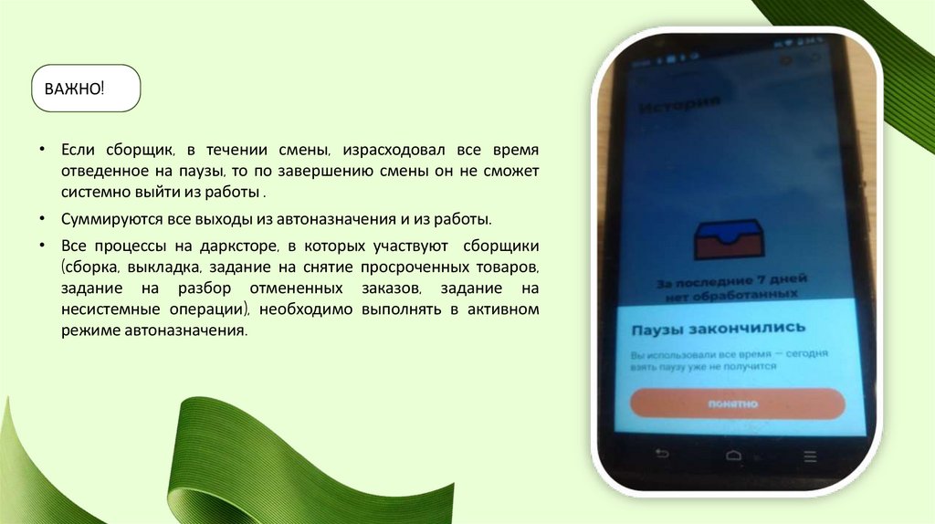 отведенное на паузы, то по завершению смены он не сможет