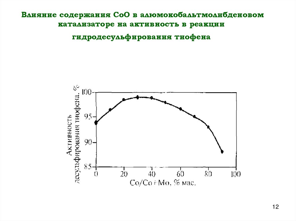 Влияние содержания СоО в алюмокобальтмолибденовомкатализаторе на активность в реакции