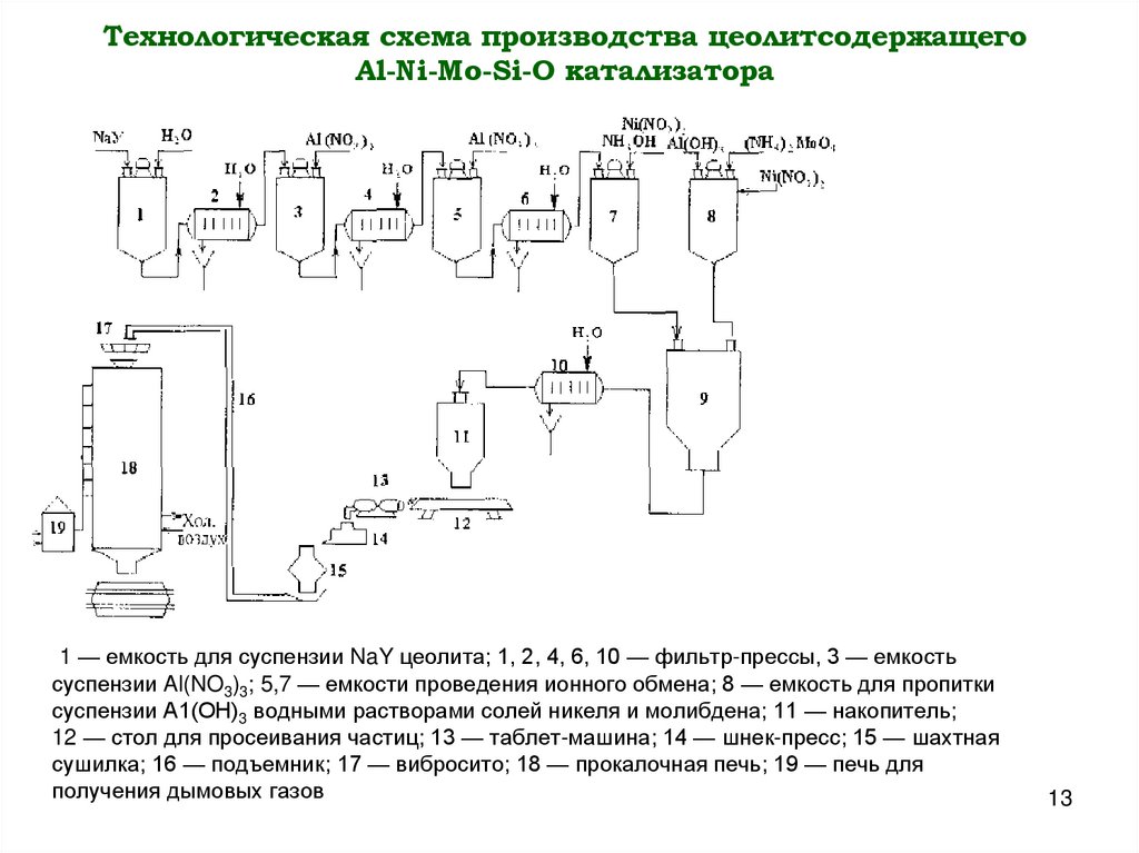 Технологическая схема производства цеолитсодержащегоAl-Ni-Mo-Si-O катализатора