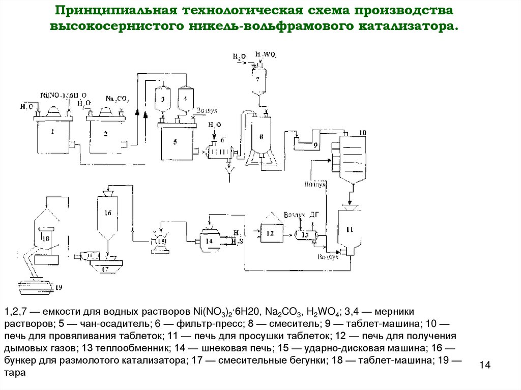 Принципиальная технологическая схема производствавысокосернистого никель-вольфрамового катализатора.