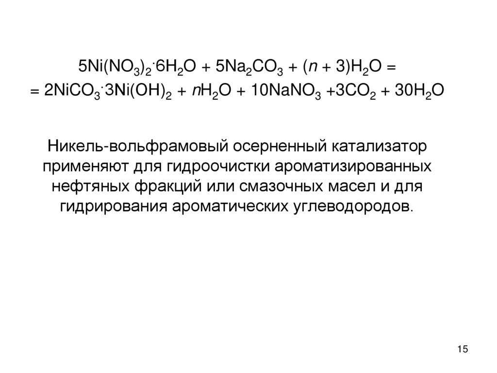 5Ni(NO3)2·6H2O + 5Na2CO3 + (n + 3)H2O == 2NiCO3·3Ni(OH)2 + nH2O + 10NaNO3 +3CO2 + 30H2O
