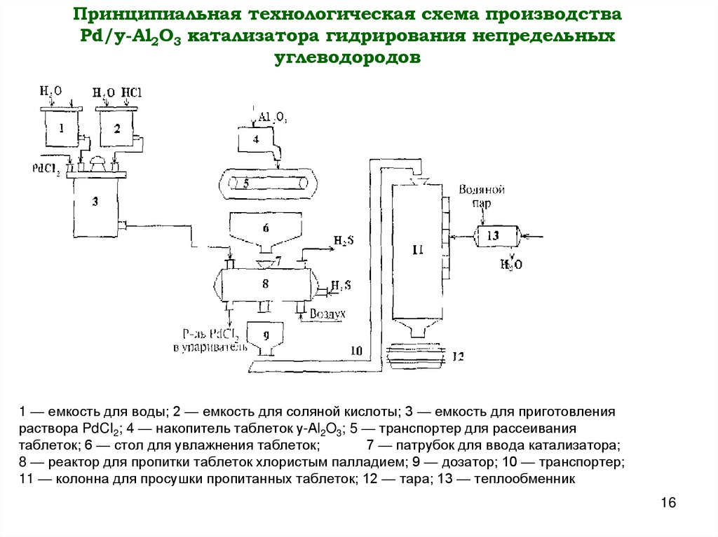 Принципиальная технологическая схема производстваPd/y-Al2O3 катализатора гидрирования непредельных