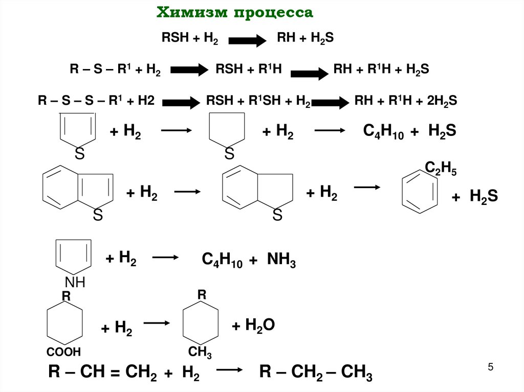 Гидроочистка нефтяного сырья. Химизм процесса.
