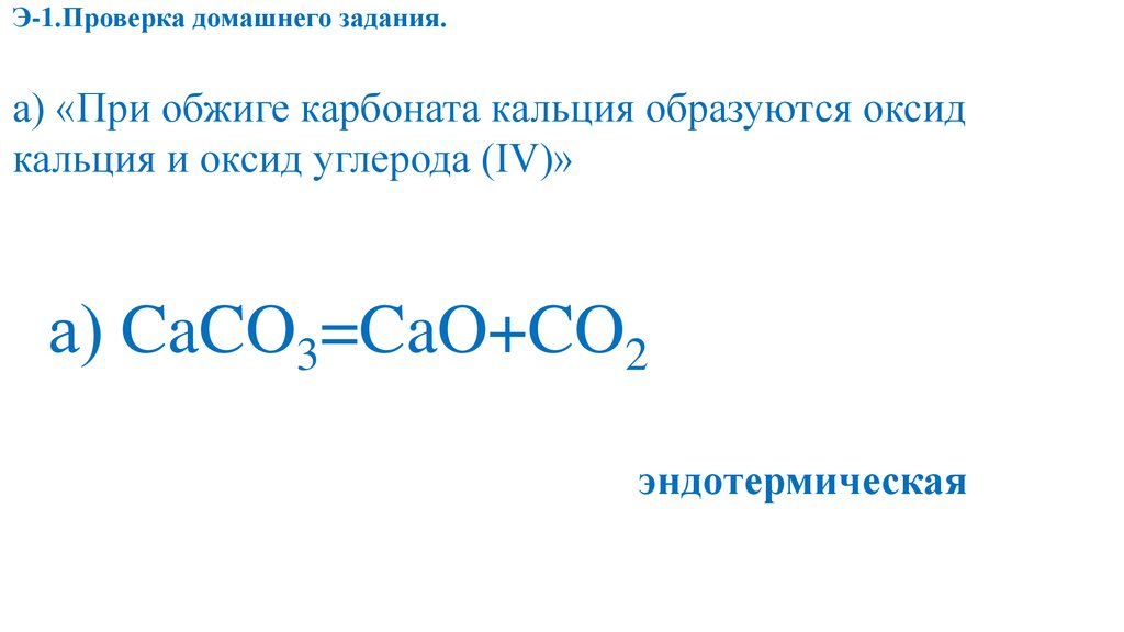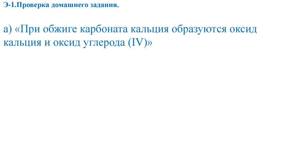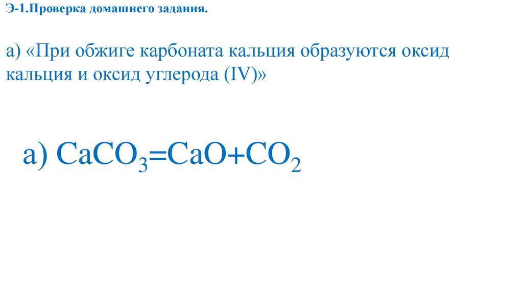 Э-1.Проверка домашнего задания.а) «При обжиге карбоната кальция образуются оксид