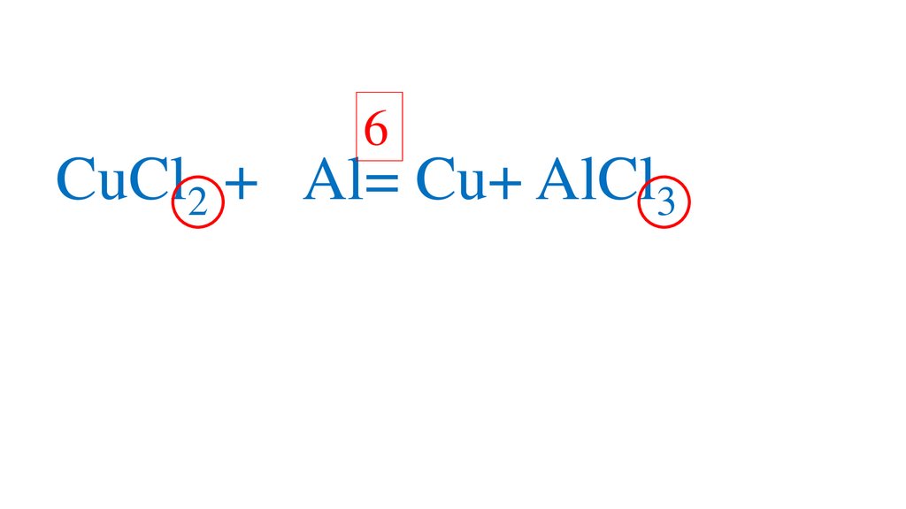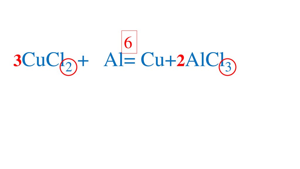 6CuCl2 + Al= Cu+ AlCl3