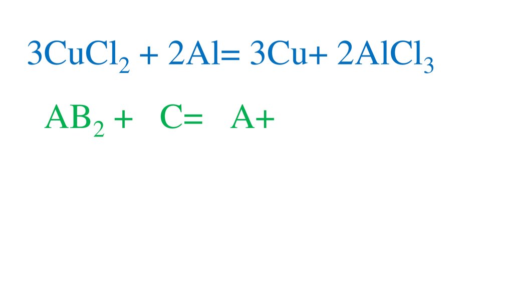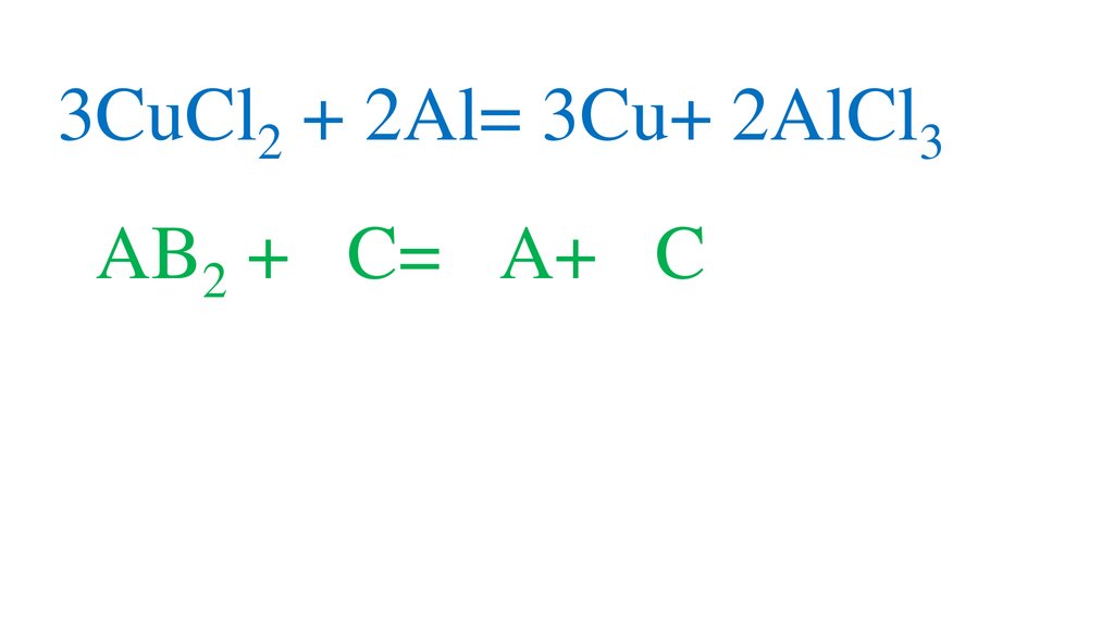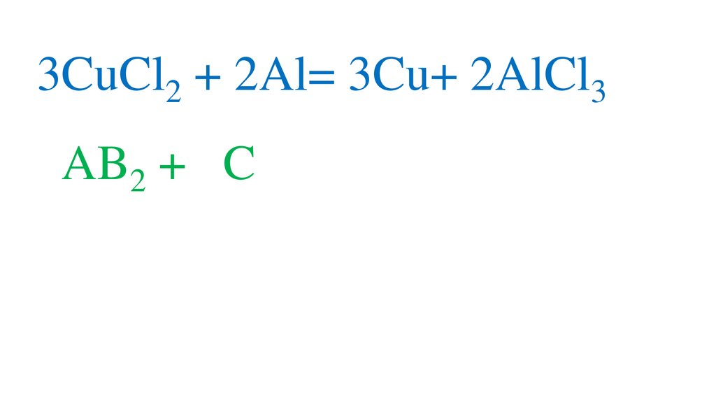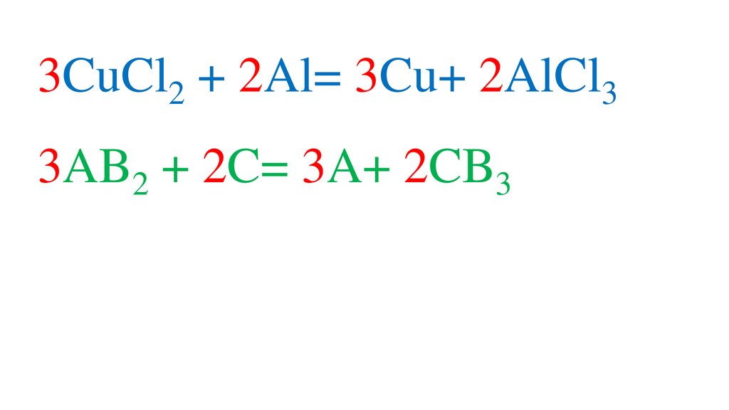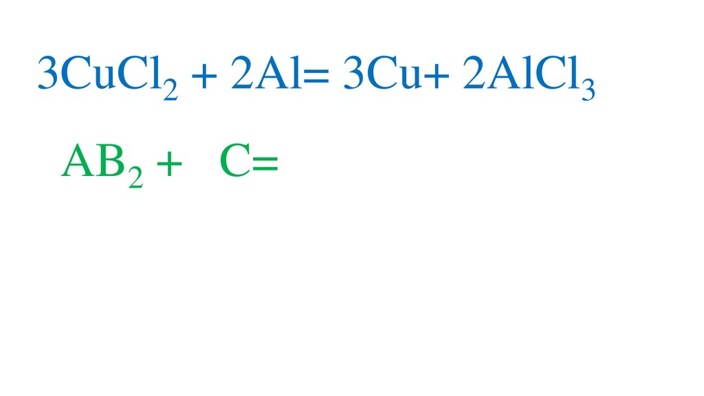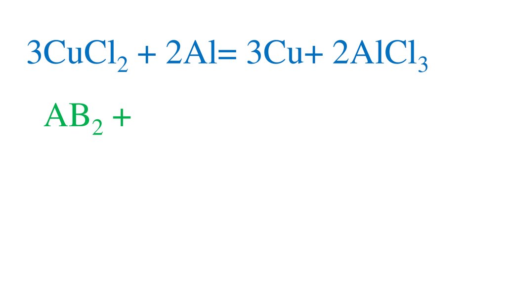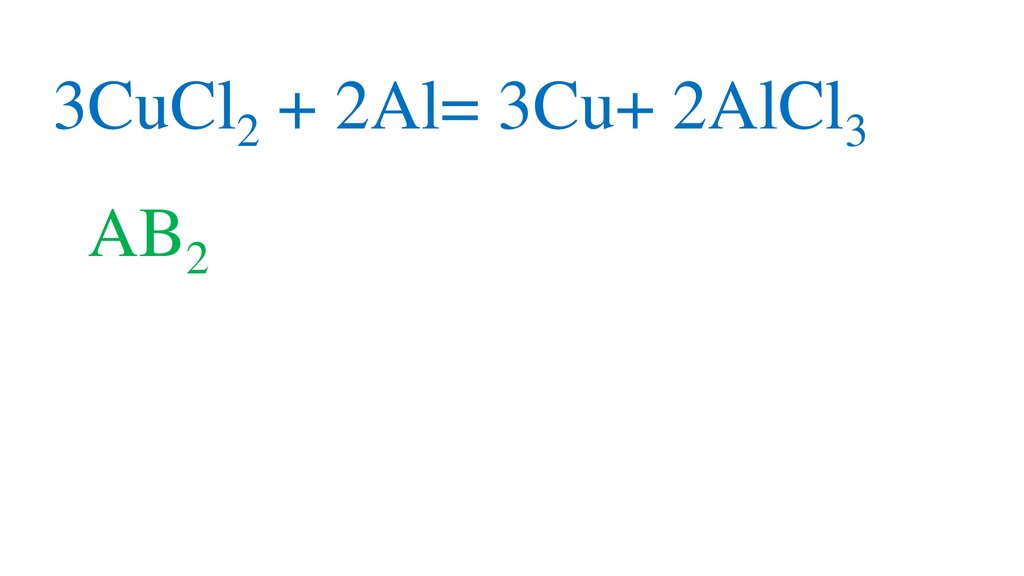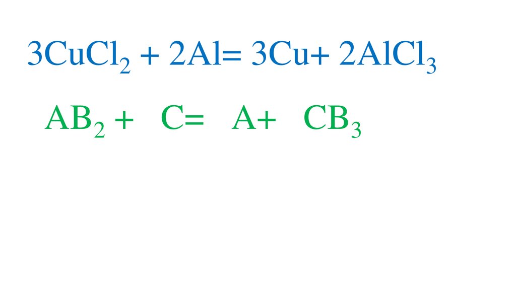 3CuCl2 + 2Al= 3Cu+ 2AlCl33AB2 + 2C= 3A+ 2CB3