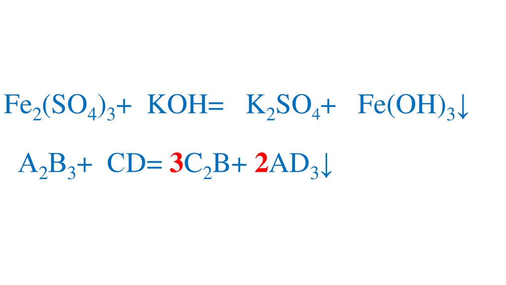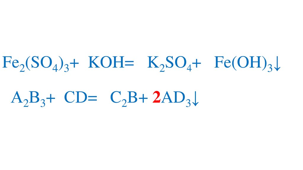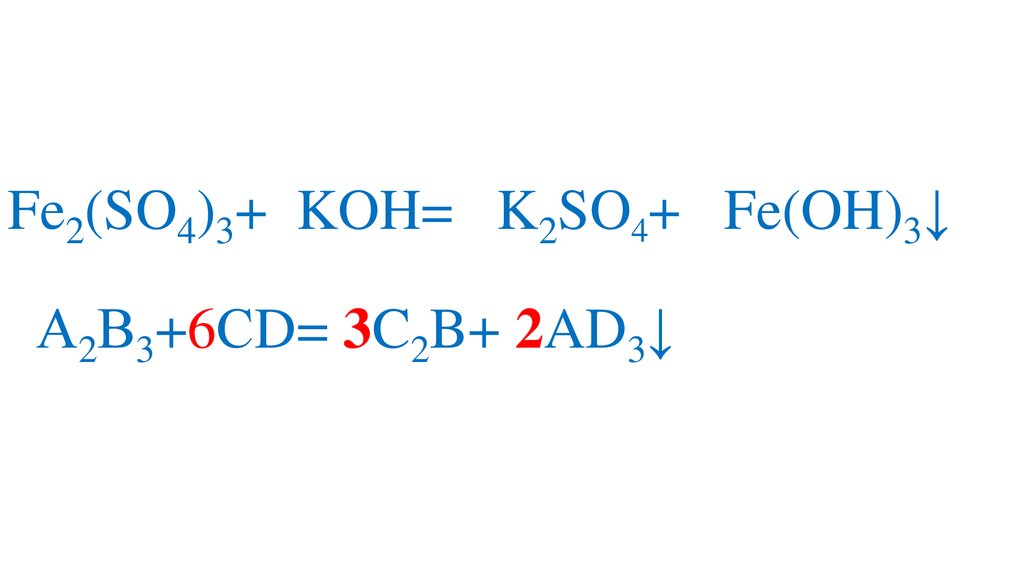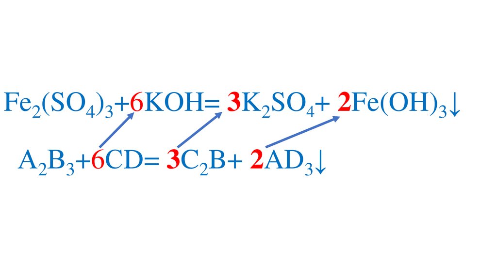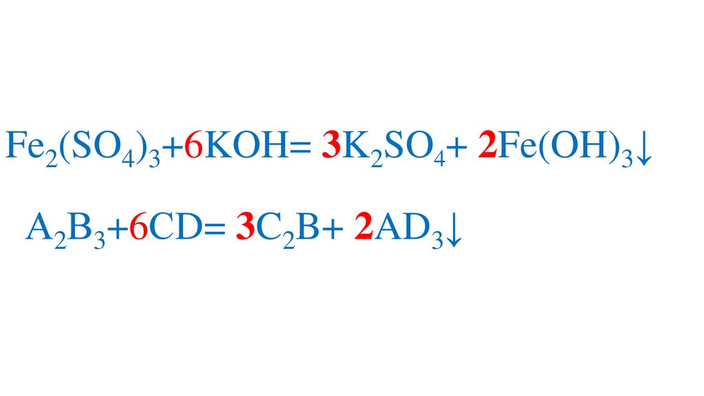 Fe2(SO4)3+6KOH= 3K2SO4+ 2Fe(OH)3↓А2В3+6СD= 3C2B+ 2AD3↓